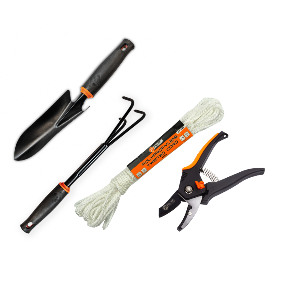 - Комплектація: лопатка, культиватор міні, секатор 200мм, шнур поліпропіленовий