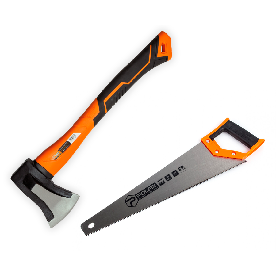 Набір Polax сокира-колун 1 кг і ножівка по дереву 450 мм (335-20)