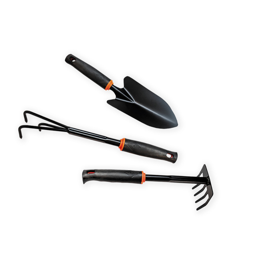 - Комплект включає найнеобхідніші інструменти для догляду за садом та городом.