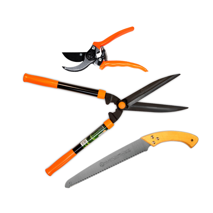 Набір садових інструментів Polax секатор ресорний, ножівка, ножиці для стрижки кущів (770-12)