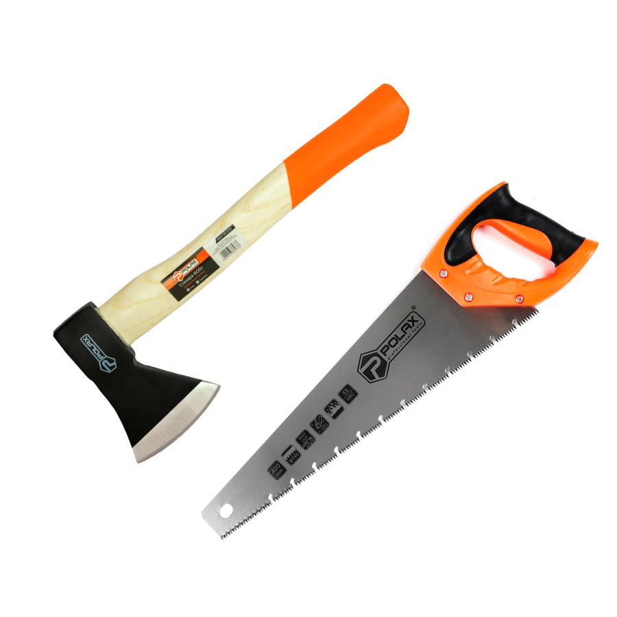 Набір сокира 600 г дерев\'яна ручка і ножівка по мокрому дереву 400 мм Polax (335-34)