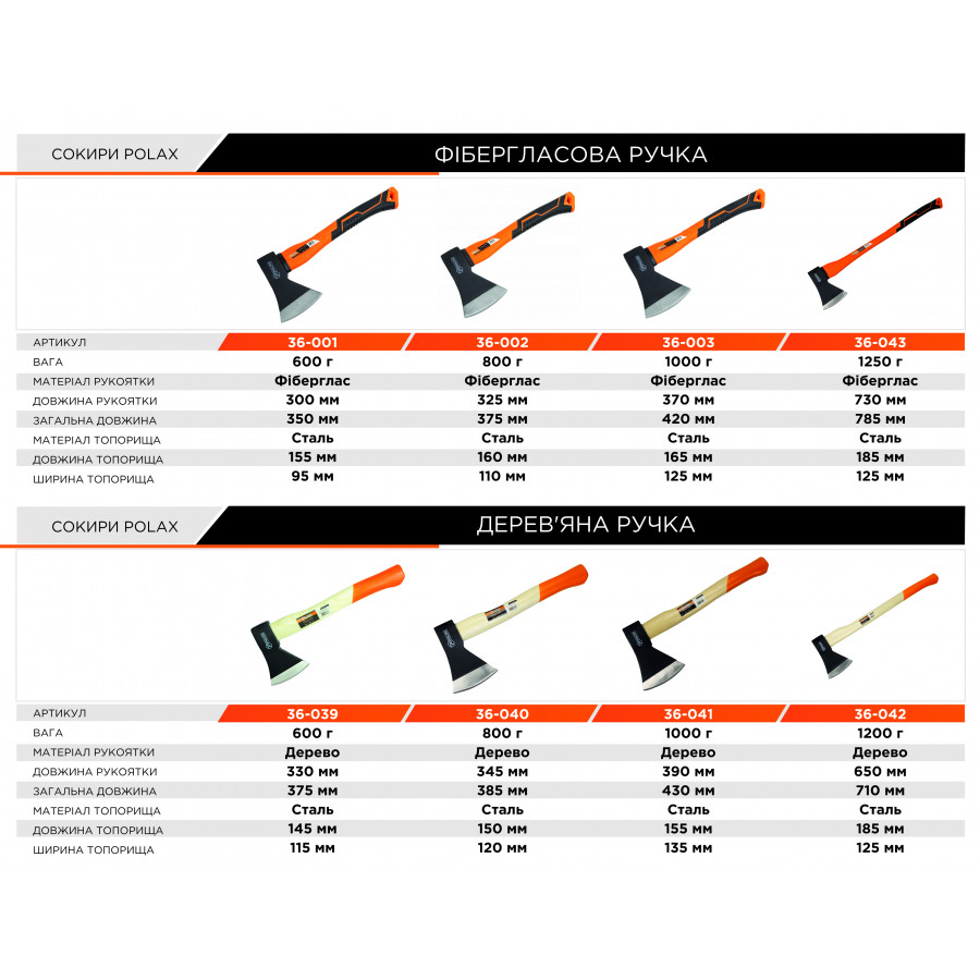 Правильний вибір сокири – це гарантія безпечної та продуктивної роботи. Polax – це про якість, зручність та довговічність. Обираючи інструмент від цього бренду, ви інвестуєте у власний комфорт та ефективність роботи.