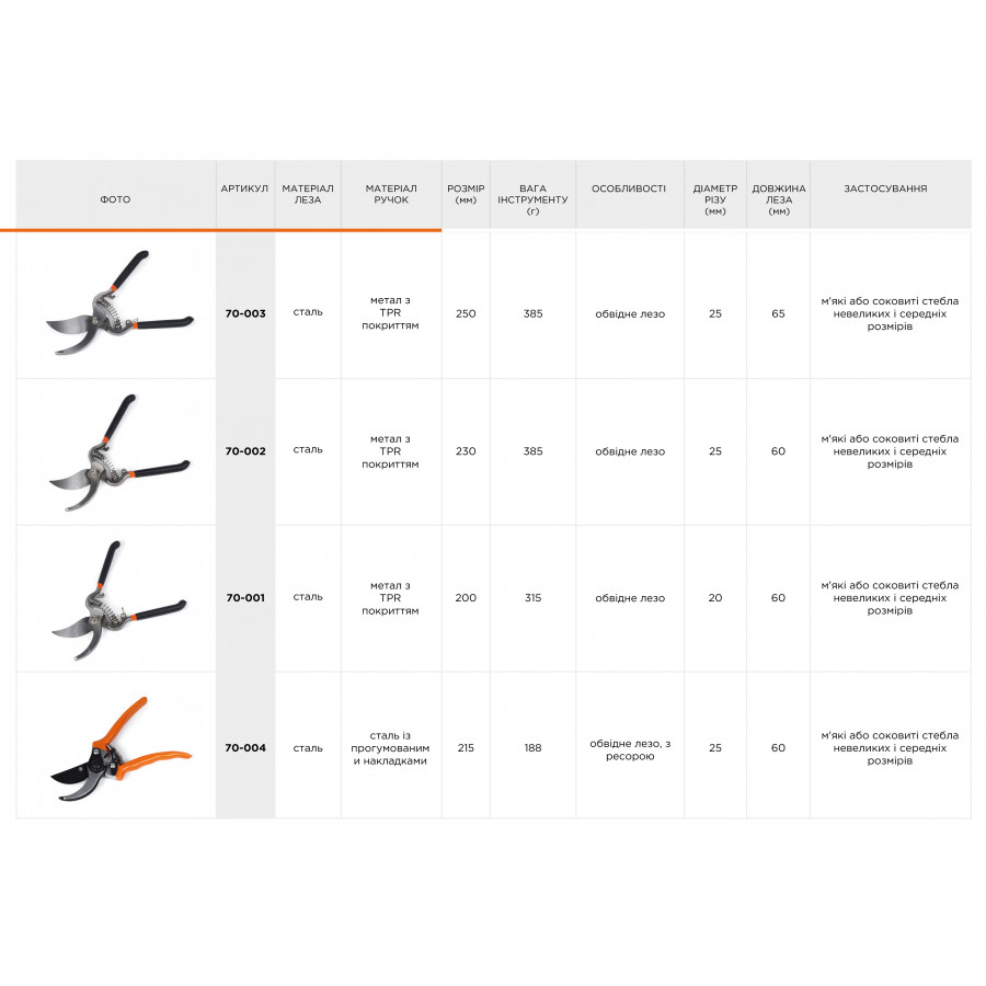 - Висока якість: Секатор виготовлений з урахуванням сучасних стандартів, що гарантує його надійність та тривалу службу.