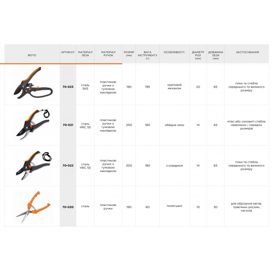 - Універсальність застосування – ідеально підходить для обрізки гілок, квітів, пагонів у саду, на городі чи присадибній ділянці.
