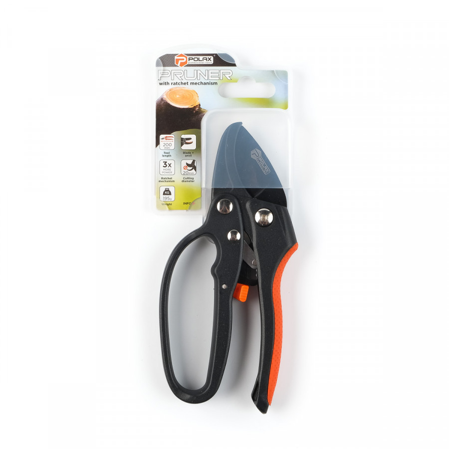 Секатор Polax із храповим механізмом (70-023) ідеально підходить як для професіоналів, так і для аматорів садівництва. З його допомогою значно простіше здійснювати формування крони, санітарну обрізку, догляд за декоративними рослинами та живоплотом.