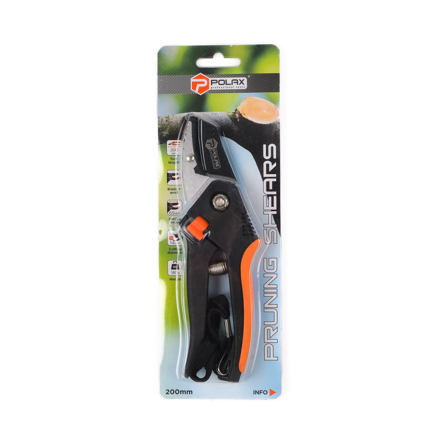 Секатор з ковадлом від Polax дозволяє легко та акуратно обрізати навіть найжорсткіші гілки. Завдяки ковадлу, навантаження рівномірно розподіляється по гілці, що забезпечує чистий зріз та мінімальне пошкодження рослини.