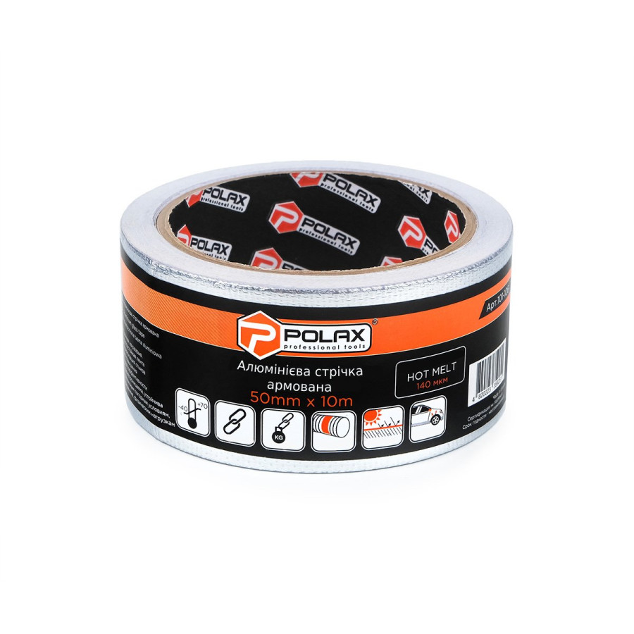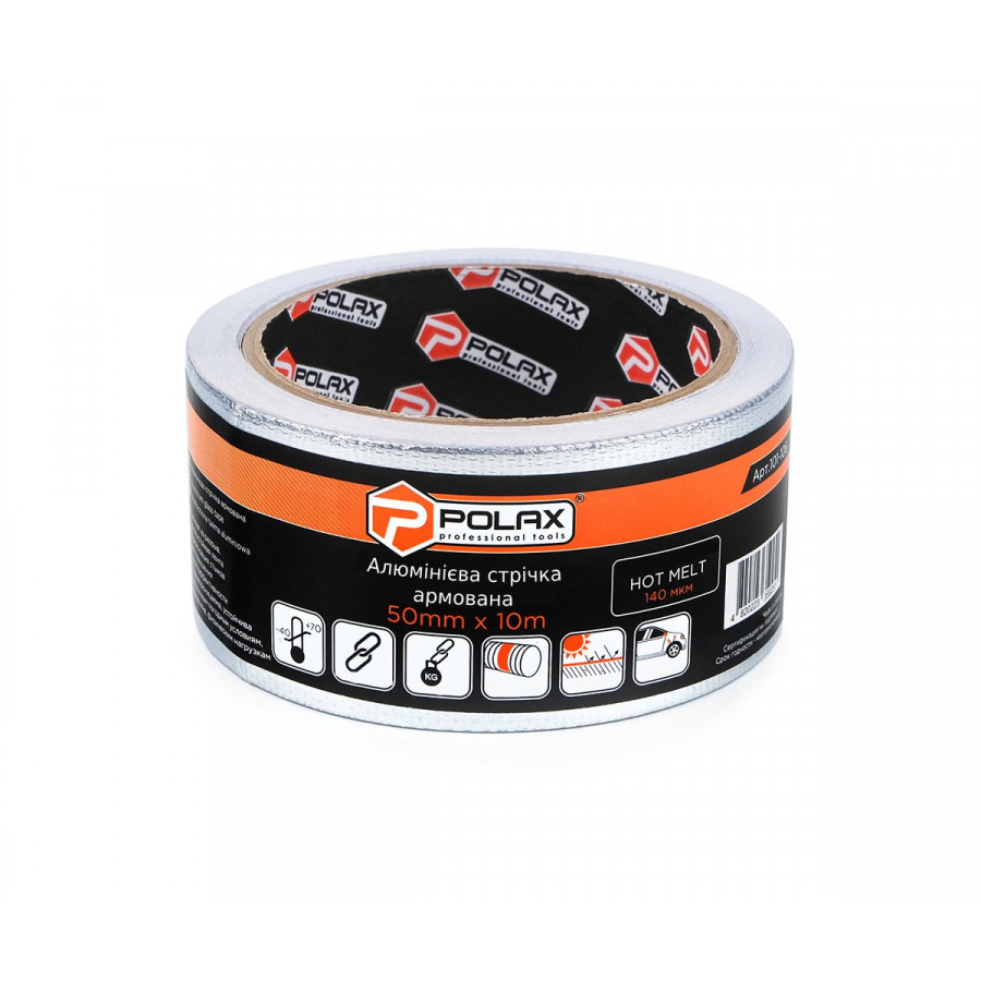Надійна клейка основа дозволяє використовувати армовану стрічку у важкодоступних місцях, де необхідно забезпечити міцність та герметичність. Завдяки ширині 50 мм та довжині 10 м, скотч Polax ідеально підходить для виконання як невеликих, так і масштабних завдань.