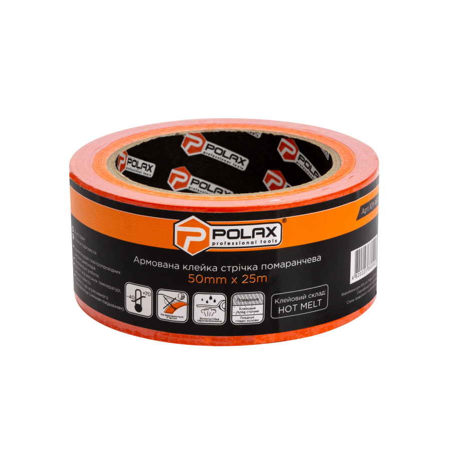 Теги: Скотч армований Polax клейка стрічка помаранчева 50 мм х 25 м (101-169), , 101-169, Polax, Армированная лента Оранжевая стандарт, Армированные ленты, Скотчи и спецленты
