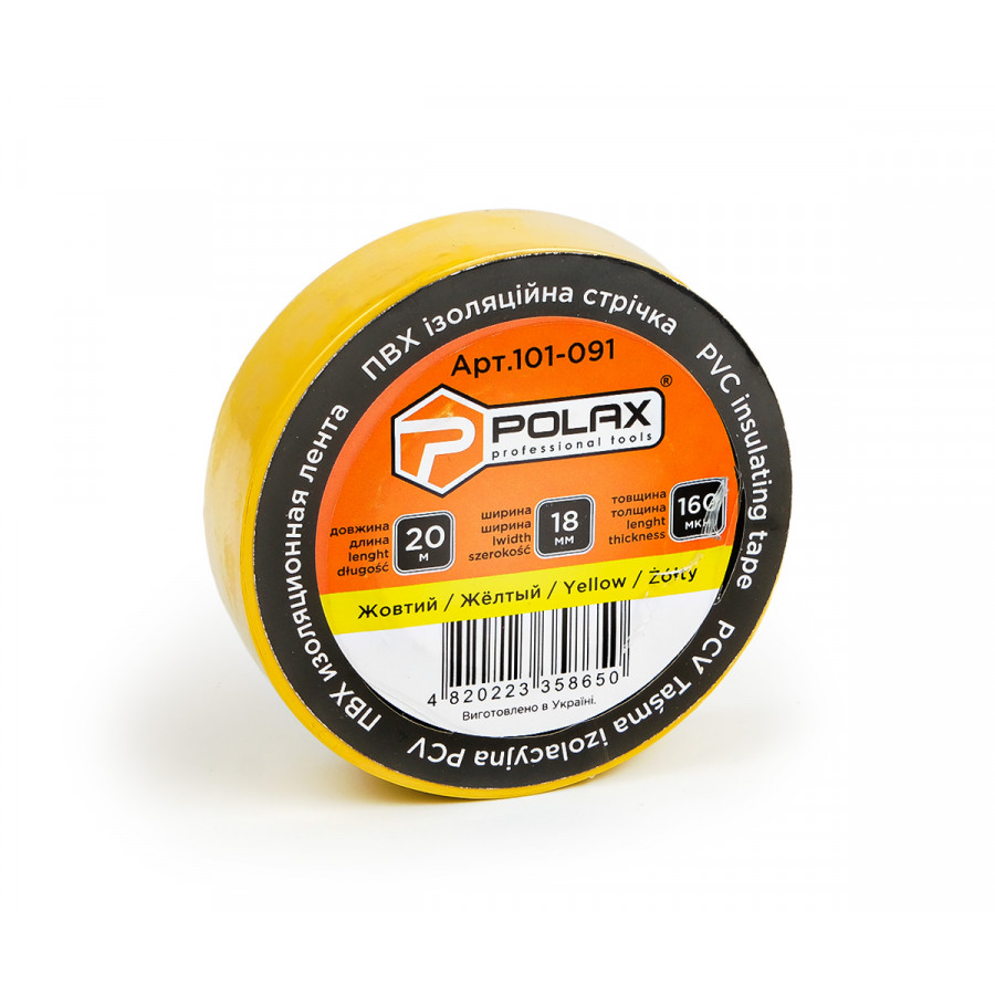 Ізоляційна стрічка ПВХ Polax жовта 20 м (101-091)