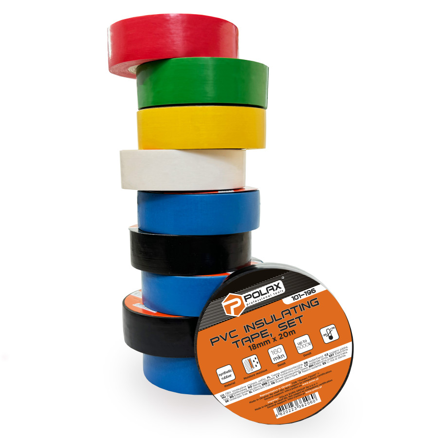 Теги: Набір ізоляційних стрічок Polax ПВХ кольорові 20 м (101-196), , 101-196, Polax, Изоляционные ленты, Набор изоляционных лент, Скотчи и спецленты
