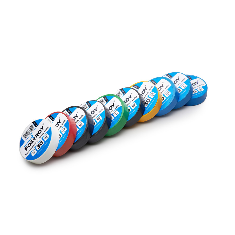 Набір ізоляційних стрічок Postroy ПВХ кольорові 30 м (30-30187)