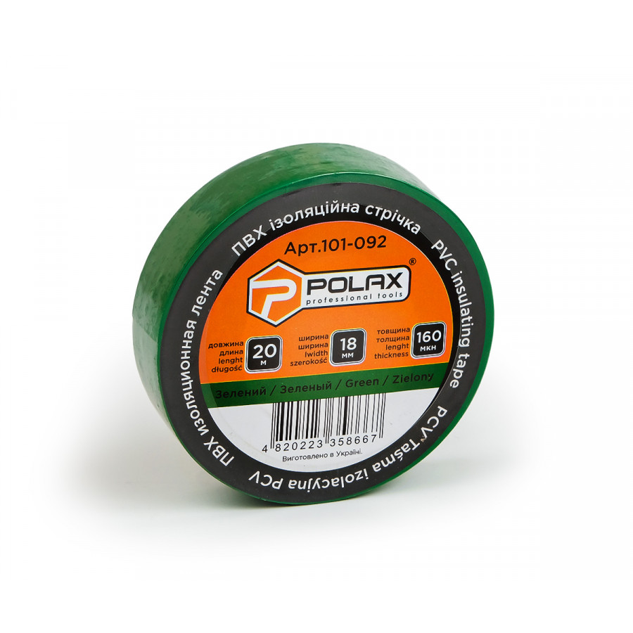 Теги: Ізоляційна стрічка ПВХ Polax зелена 20 м (101-092), , 101-092, Polax, Зеленая лента ПВХ, Изоляционные ленты, Скотчи и спецленты