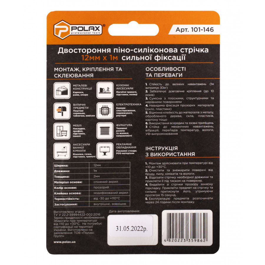 Даний товар розроблений відомим брендом Polax, що зареєстрований в Україні. Прозорий колір дає змогу використовувати стрічку непомітно у будь-яких умовах, забезпечуючи естетичний вигляд і надійне з’єднання.