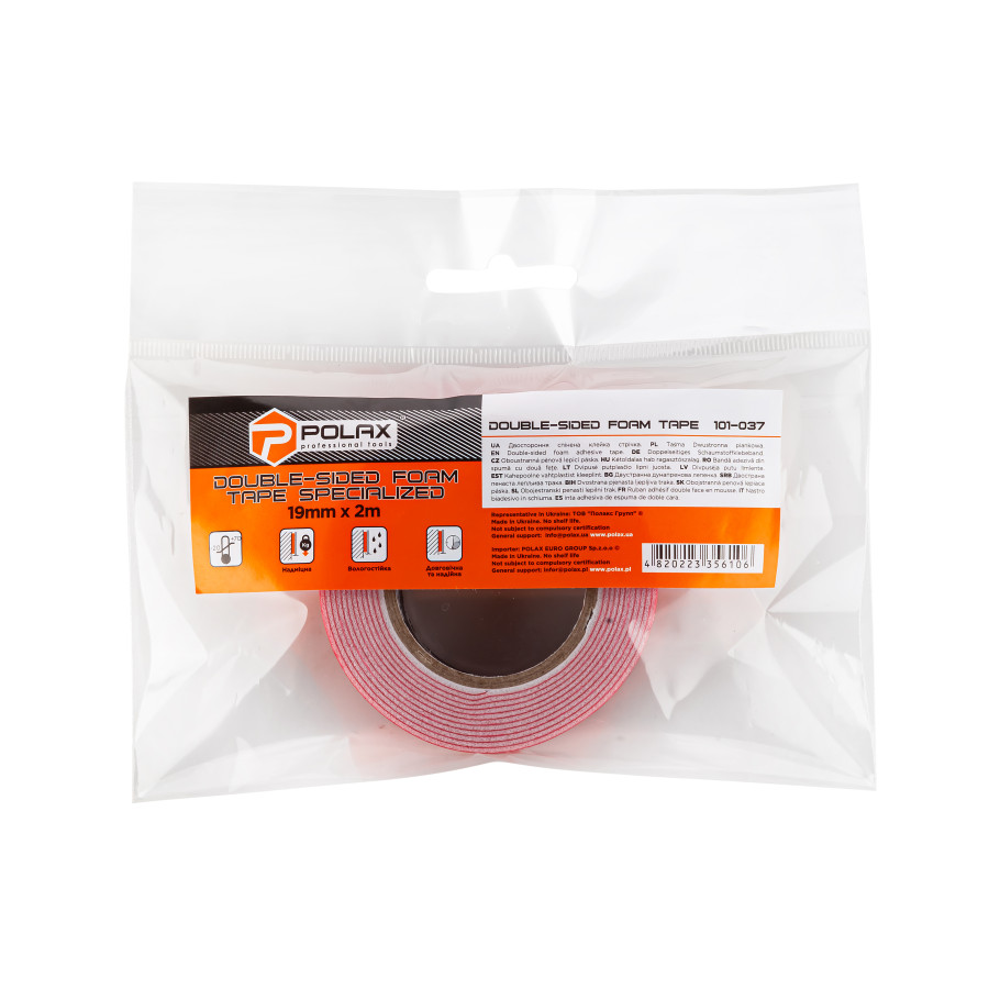 Скотч двосторонній Polax клейка стрічка Спеціалізована на спіненій основі 19 мм х 2 м (101-037)