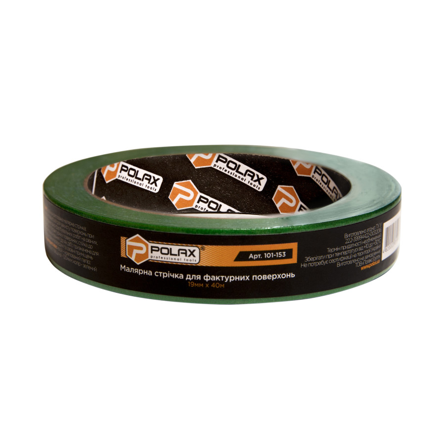 Теги: Малярна клейка стрічка Polax для фактурних поверхонь 19 мм х 40 м (101-153), , 101-153, Polax, Ленты малярные, Ленты малярные для фактурных поверхностей, Скотчи и спецленты