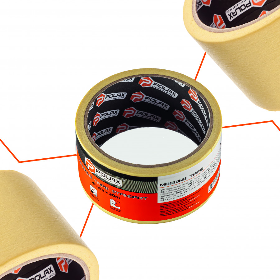 Малярна клейка стрічка Polax Стандарт 48 мм х 20 м застосовується для різноманітних видів робіт: