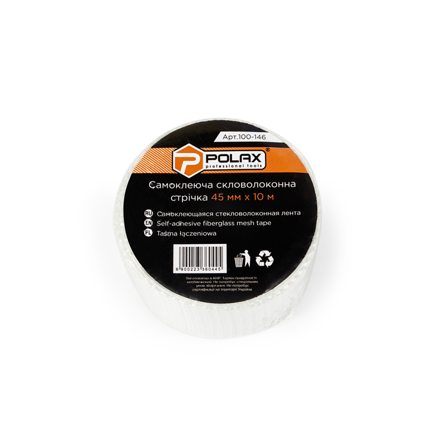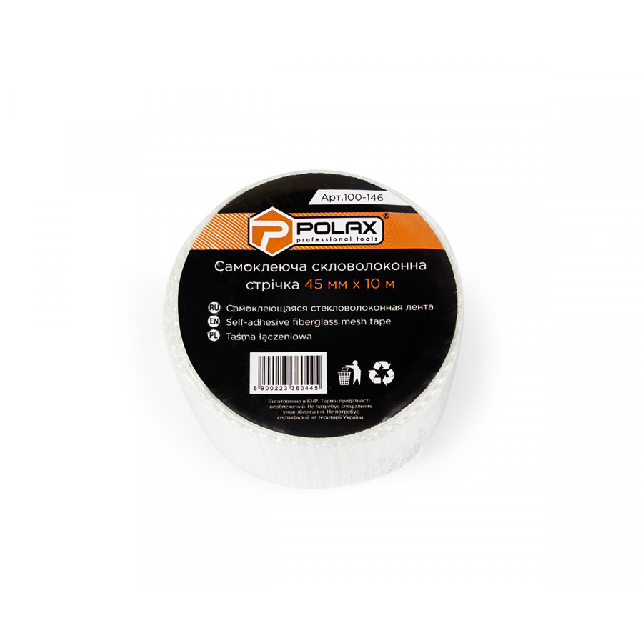 Теги: Стрічка серп'янка Polax самоклеюча скловолоконна для стиків 45 мм х 10 м (100-146), , 100-146, Polax, Ленты серпянки, Скотчи и спецленты
