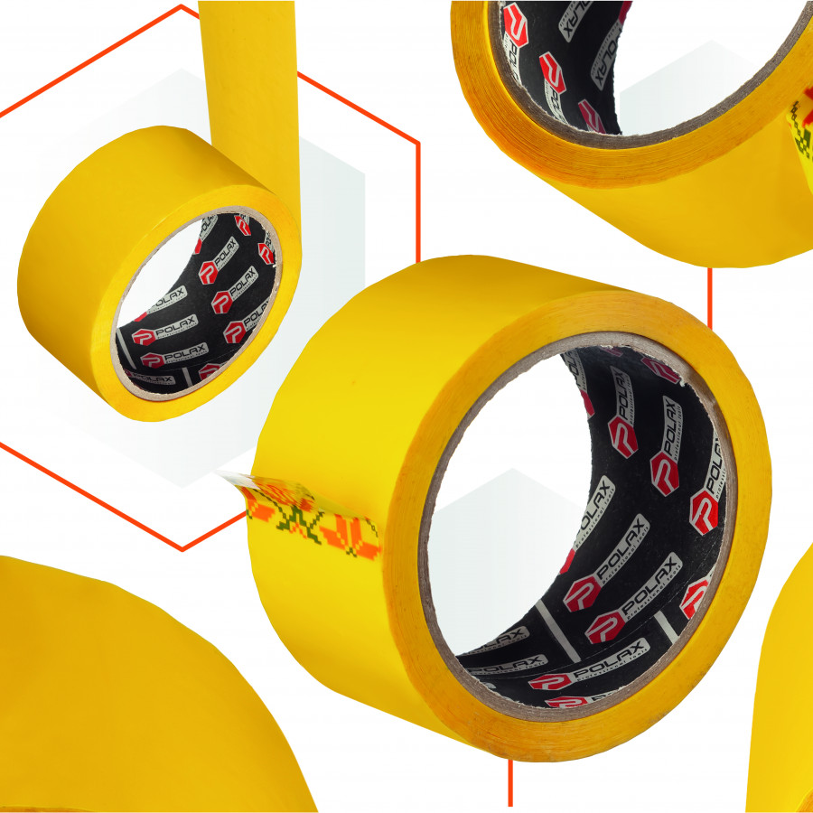 Клейка стрічка Polax забезпечує чудову адгезію до різних поверхонь, зокрема картону, пластику, металу та скла. Вона легко наноситься, забезпечує щільне закриття пакунків і не залишає після себе слідів клею після зняття.