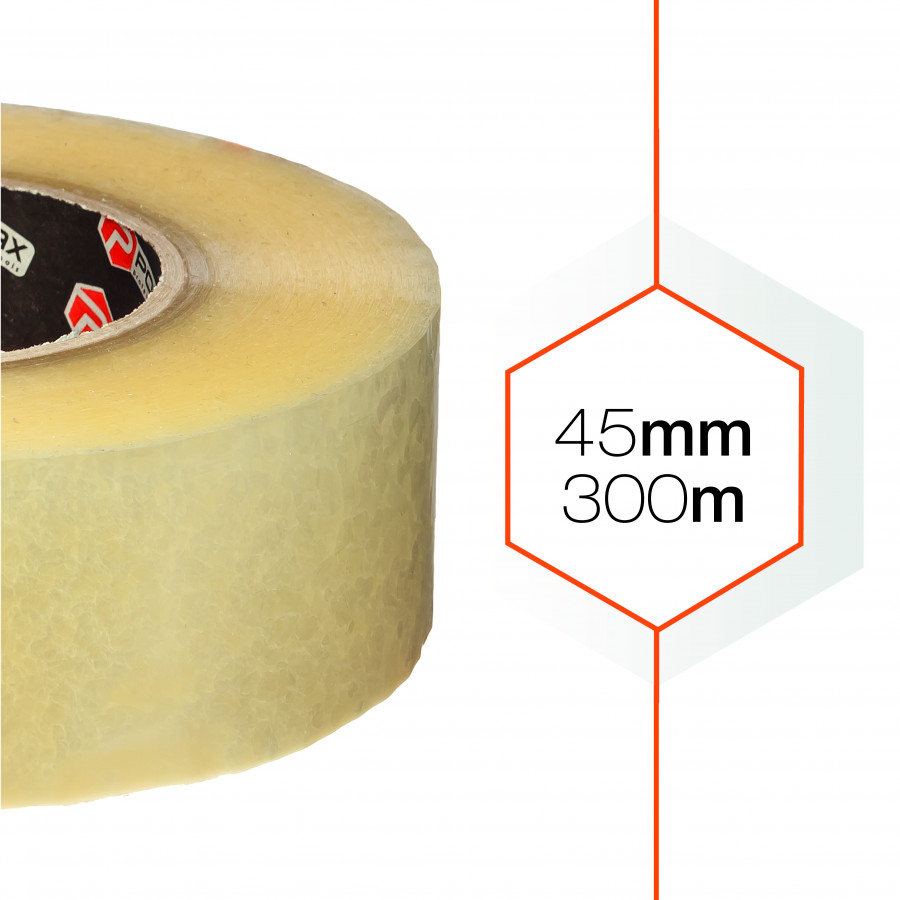 - Оптимальні розміри. Довжина 300 метрів дозволяє економити час та кошти на часту заміну рулонів, а ширина 45 мм гарантує міцне з'єднання поверхонь.