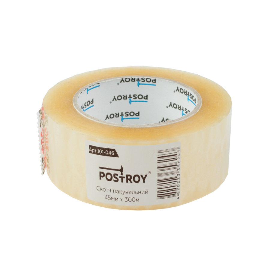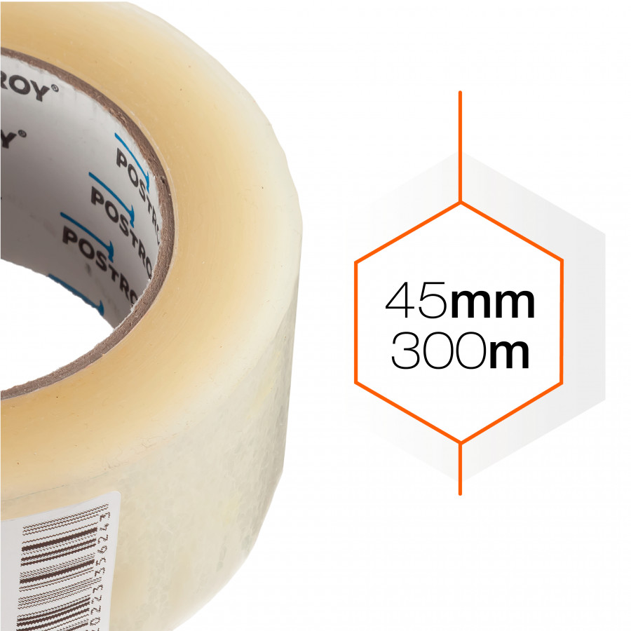 - Оптимальна ширина — 45 мм дозволяє надійно фіксувати шви та краї коробок, підвищуючи міцність пакування.