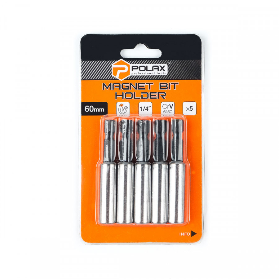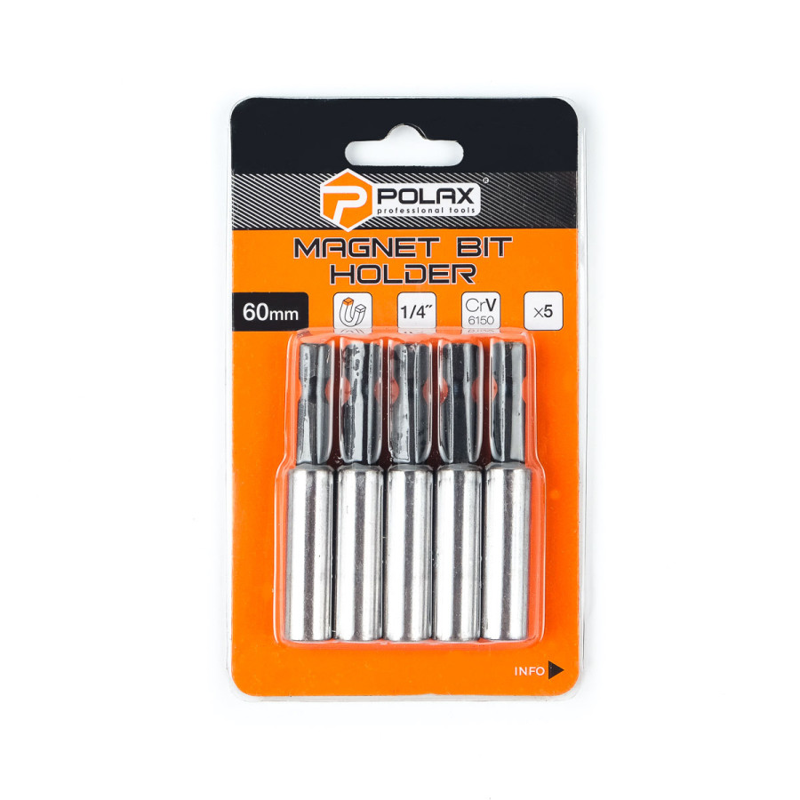 Теги: Магнітний тримач для насадок і біт 60 мм, 1/4" 5 шт (51-092), , 51-092, Polax, Битодержатели, Столярно-слесарный инструмент