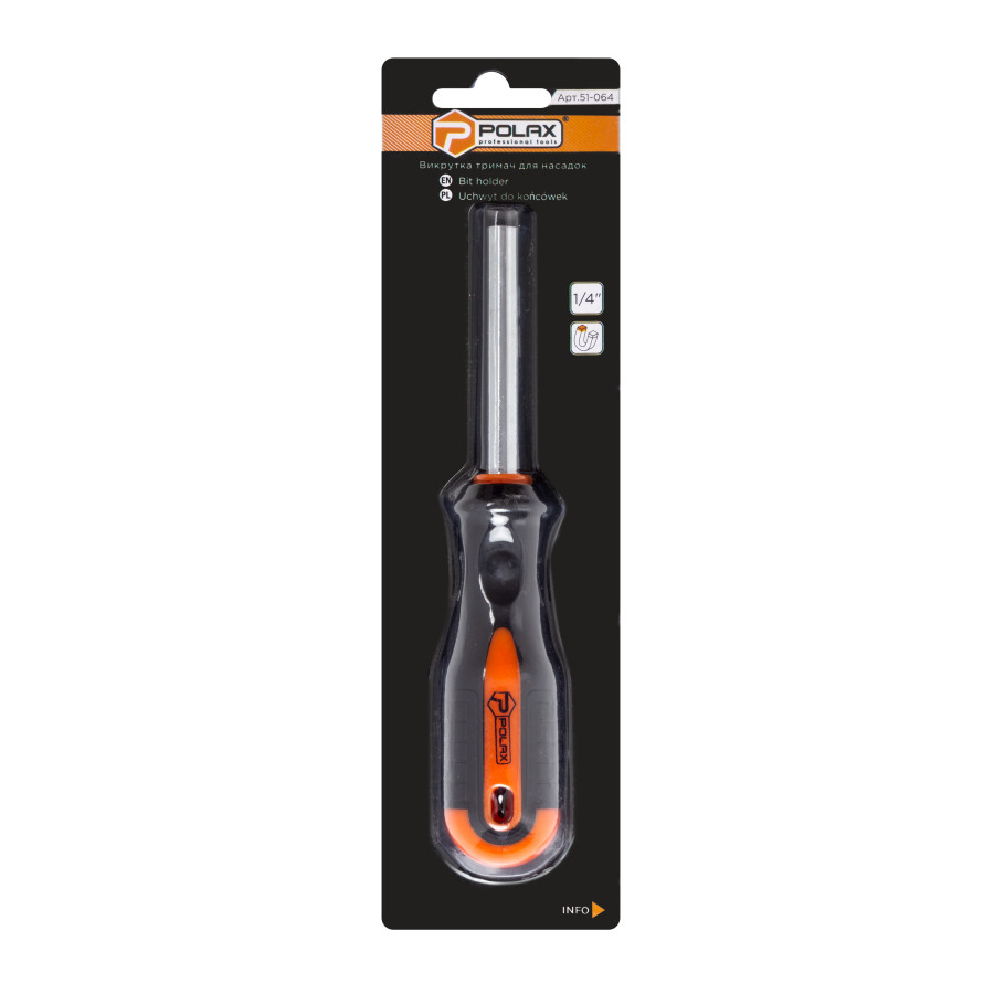 Теги: Викрутка Polax з магнітним утримувачем для біт 1/4" (51-064), , 51-064, Polax, Битодержатели, Столярно-слесарный инструмент