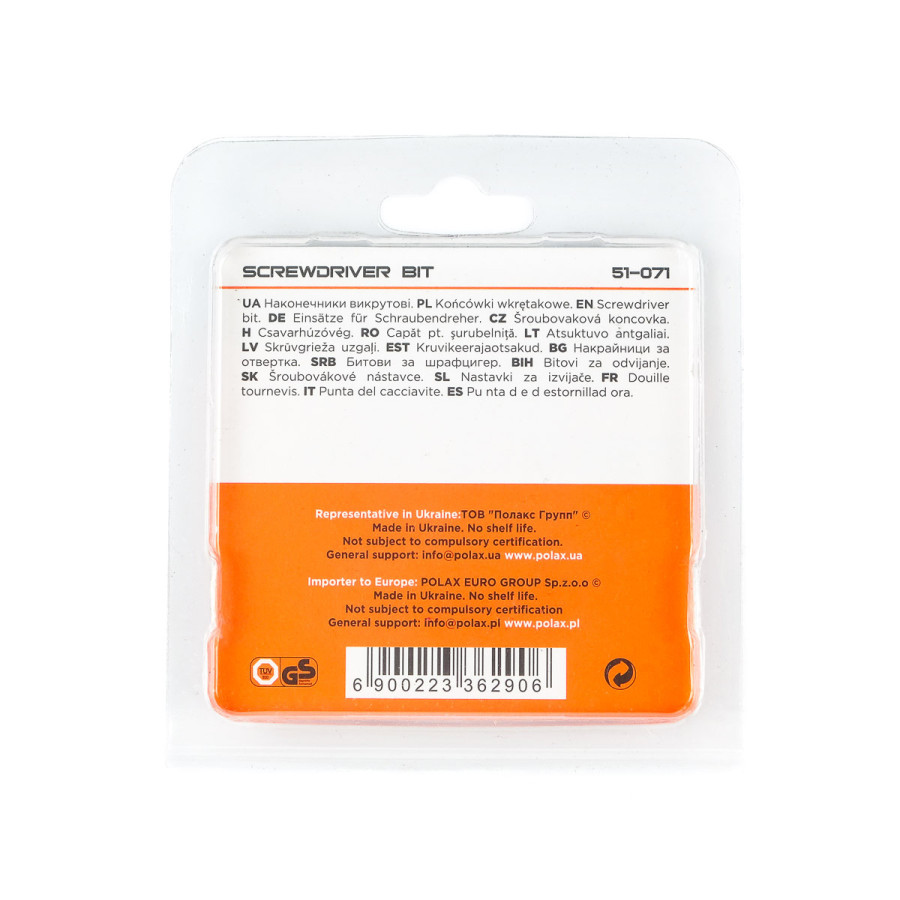 Технічні характеристики біти стальної Polax 25 мм PZ1 1/4", 10 шт (51-071)