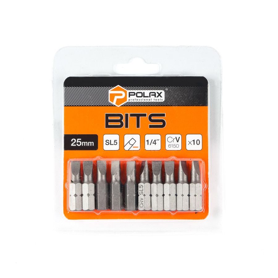 Біта сталева Polax 25 мм SL5 1/4" ,10 шт (51-069)