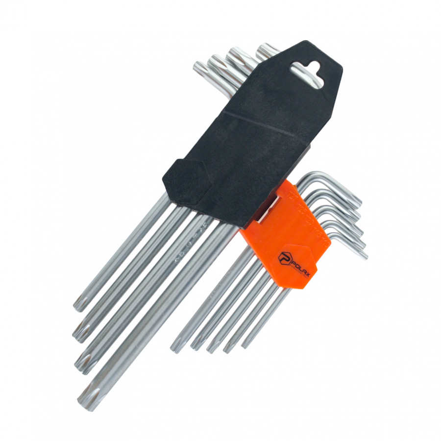Набір шестигранних TORX ключів Polax Г-подібних подовжених, 9 предметів, Т10-Т50, Cr-V (25-008) — надійний інструмент для велолюбителів