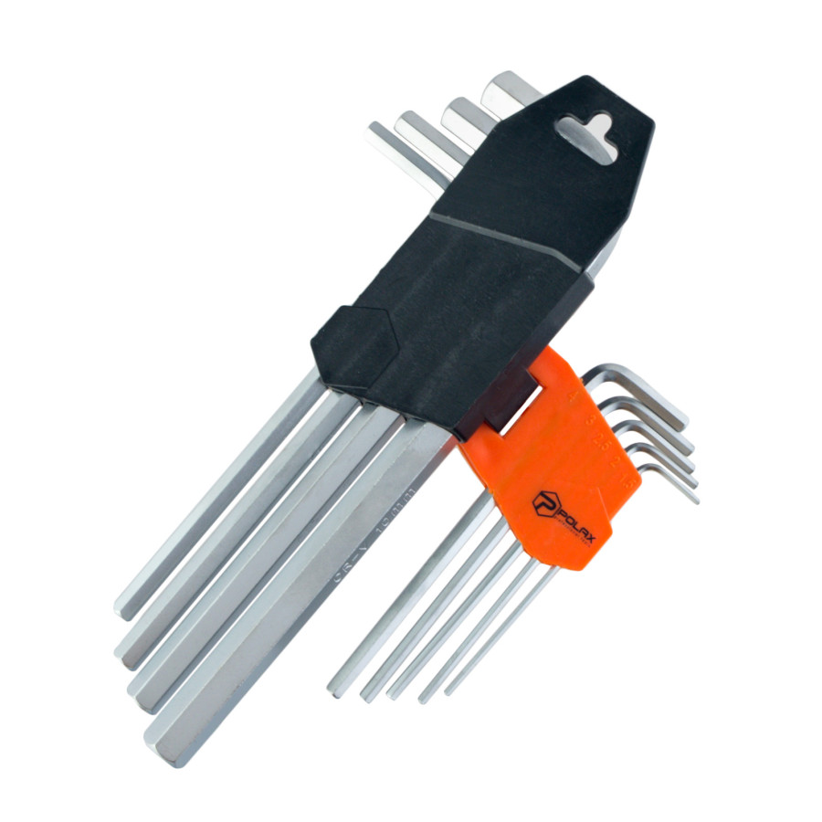 Набір шестигранних ключів Polax Г-подібних подовжених, 9 предметів, 1.5-10 мм, Cr-V (25-006) – надійний вибір для велолюбителів