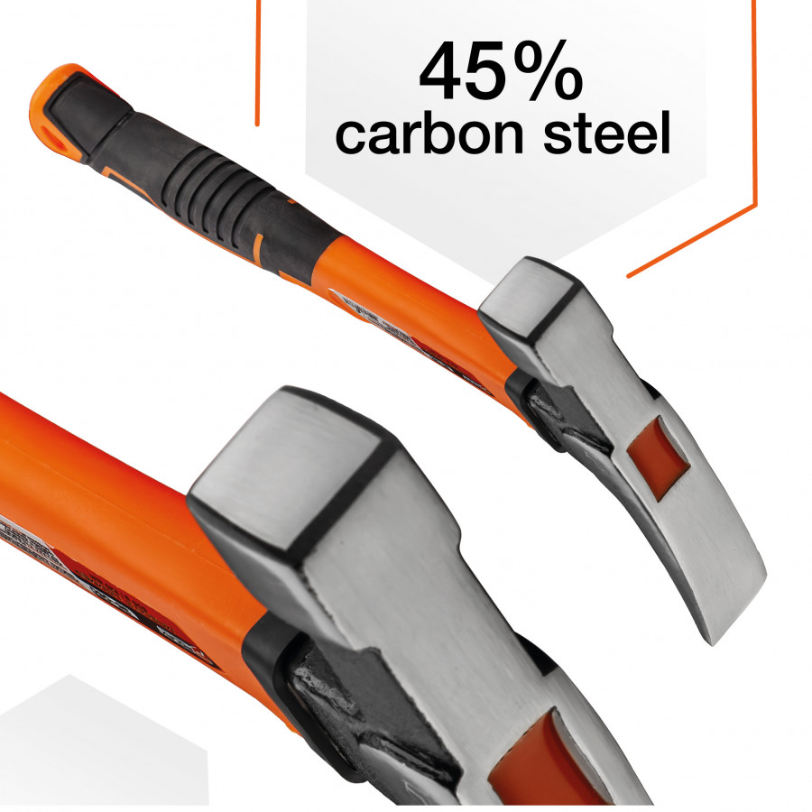 - Надійність та довговічність – завдяки використанню фібергласової ручки, молоток стійкий до зношування та механічних пошкоджень.