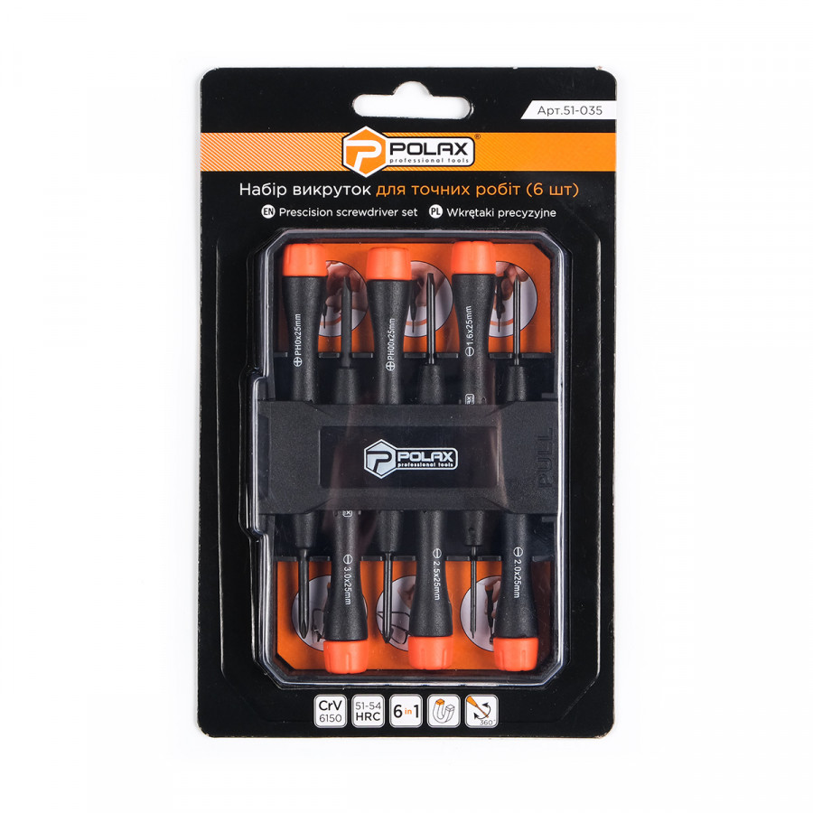 Теги: Набір викруток Polax для точних робіт 6 предметів (51-035), , 51-035, Polax, Наборы отверток, Столярно-слесарный инструмент
