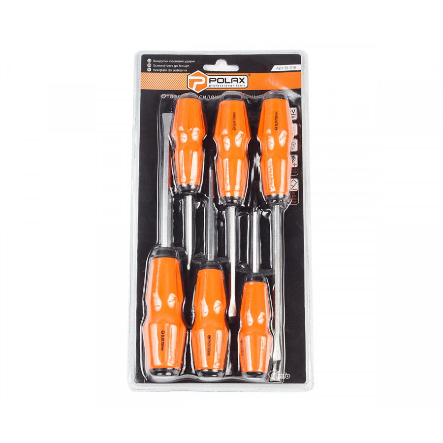 Набір викруток Polax посилені ударні 6 предметів (51-018) – надійний вибір для професіоналів та любителів