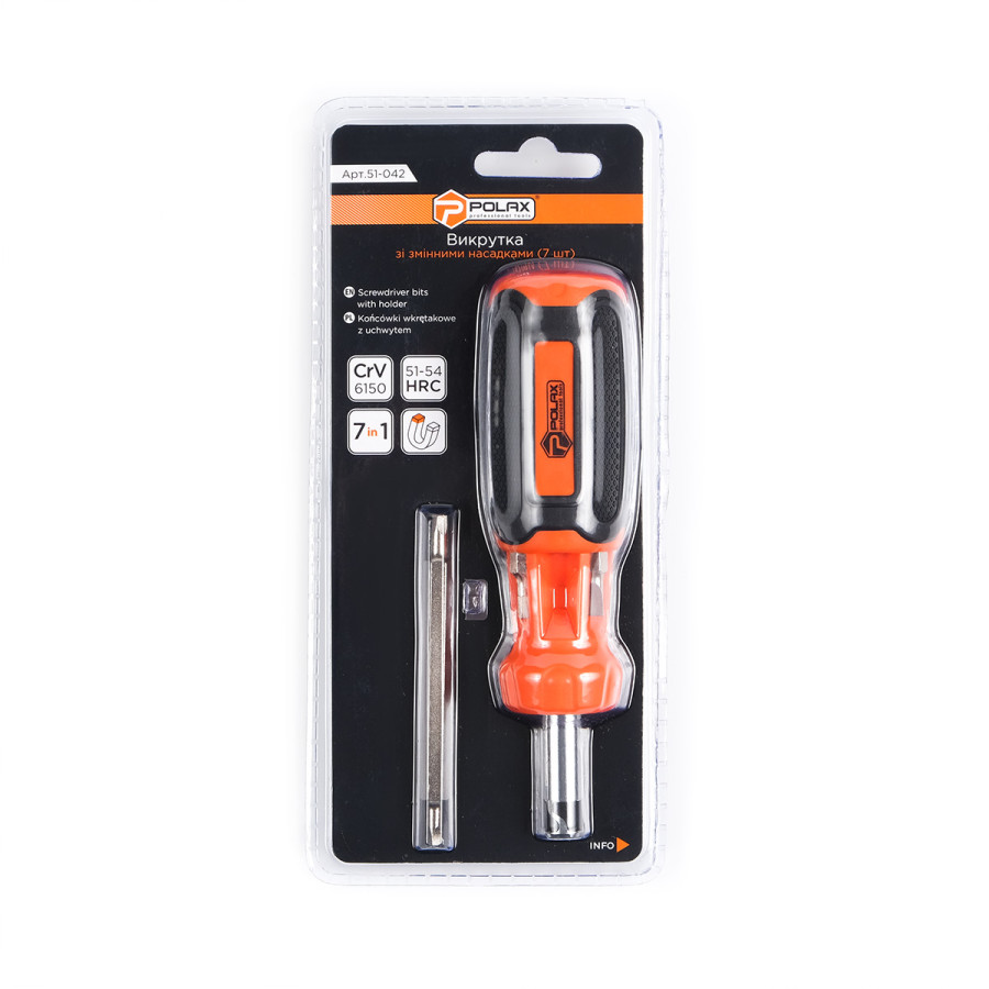 Де купити викрутку Polax з реверсом і змінними бітами 7 в 1 (51-042) в Україні?