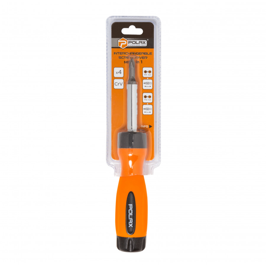 Висновок: Викрутка переставна зі змінними бітами 4 в 1 Polax (40-001) — це вибір для тих, хто цінує якість, функціональність і комфорт у роботі. Надійний інструмент, що допоможе впоратися з будь-якими завданнями та стане невід’ємною частиною Вашого арсеналу.