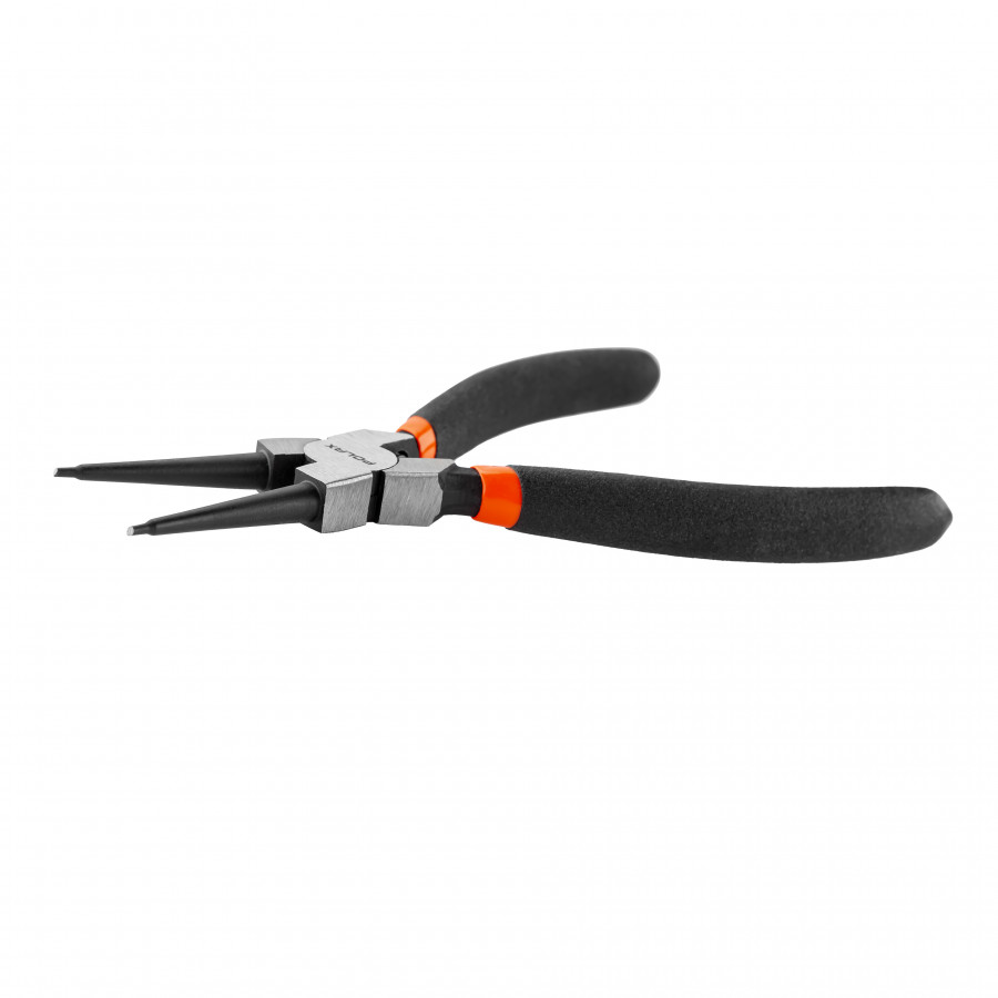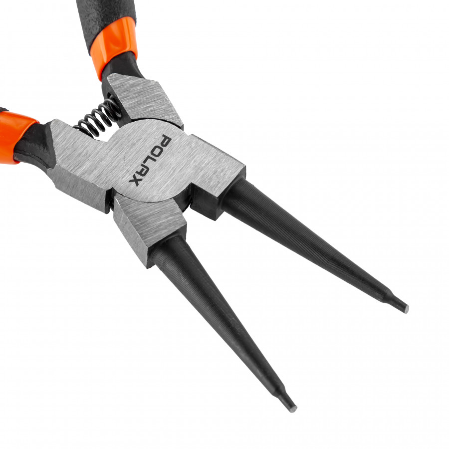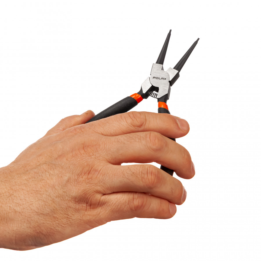 Polax прямий знімач стопорних кілець на стискання виготовлений з урахуванням професійних вимог, що дозволяє виконати розбирання та складання механізмів без ризику пошкодження складових частин. Інструмент підходить для роботи з різними матеріалами стопорних кілець, незалежно від частоти експлуатації.