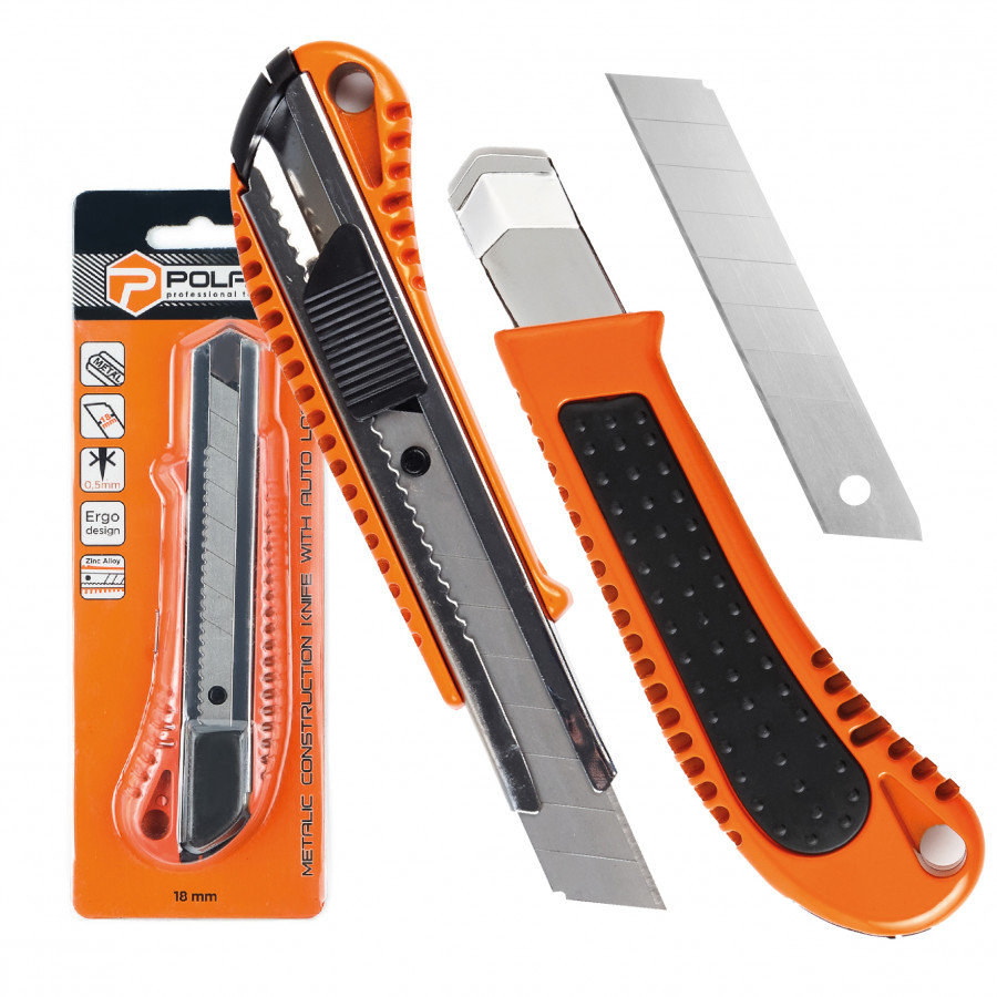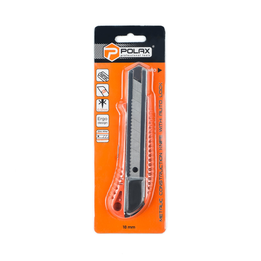 Ніж будівельний Polax металевий з висувним лезом, авто замок 18 мм (23-005)