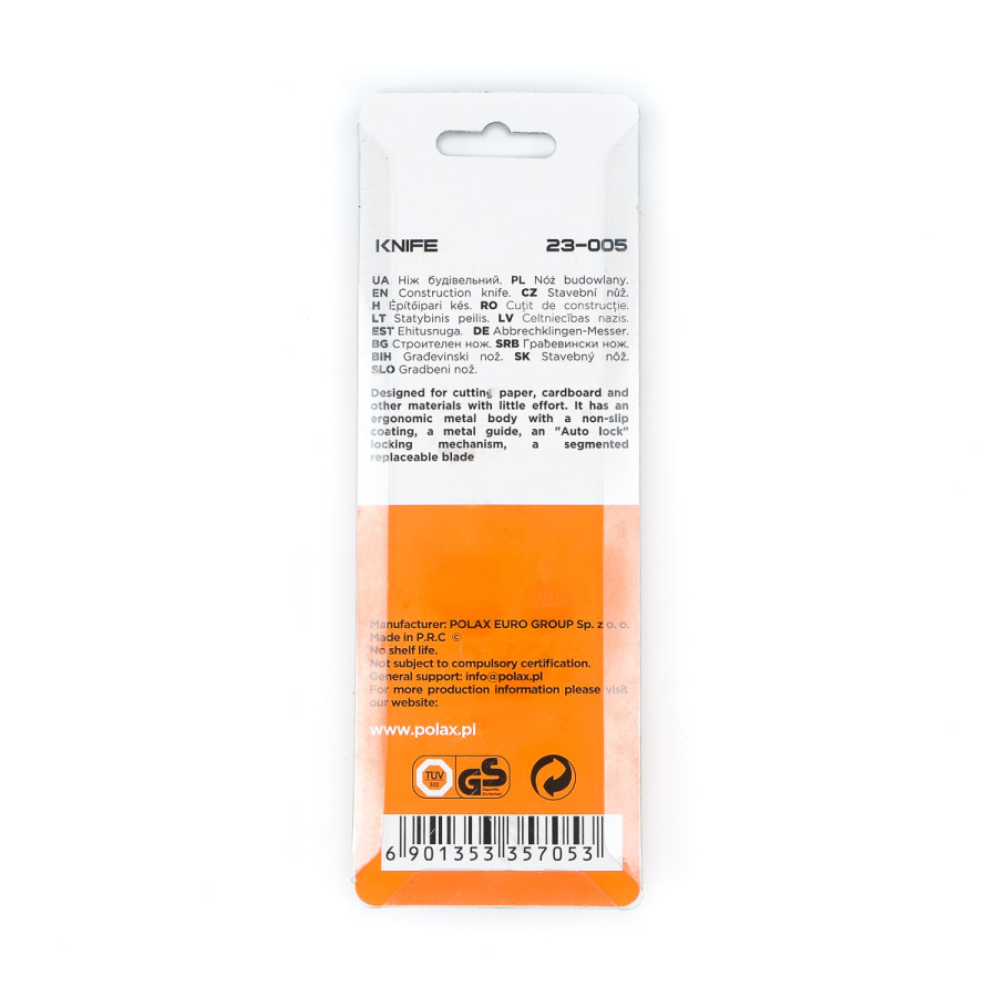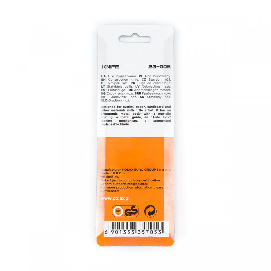 Оформіть замовлення на ніж будівельний Polax металевий з висувним лезом, авто замок 18 мм (23-005) у магазині AQUAPOST просто зараз та переконайтеся у високій якості та зручності використання цього інструменту!