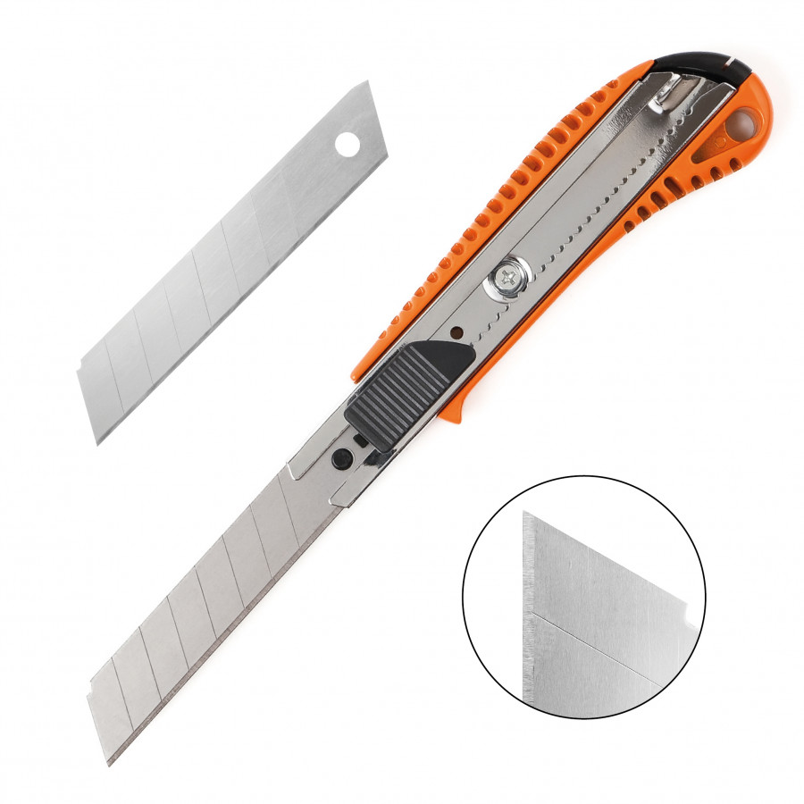 - Зручність: Ширина леза 18 мм дозволяє виконувати як дрібні, так і більш складні завдання з розрізання різних матеріалів.