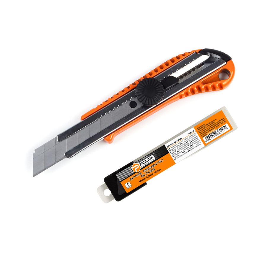 Ніж металевий та комплект лез сегментних 18 мм., 0.5 мм., 10 шт. Polax (335-73)