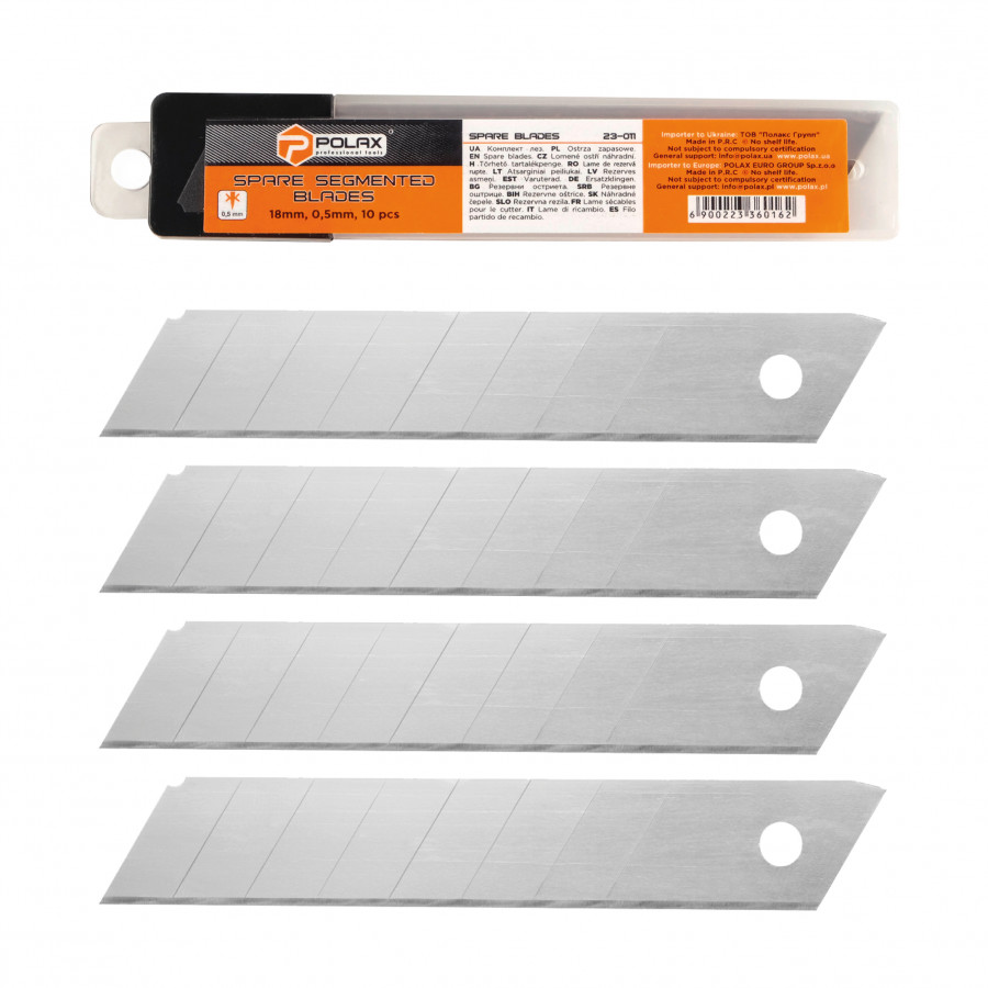Ніж металевий та комплект лез сегментних 18 мм, 0.5 мм, 10 шт. Polax (335-73) – надійний вибір для професіоналів і домашнього використання