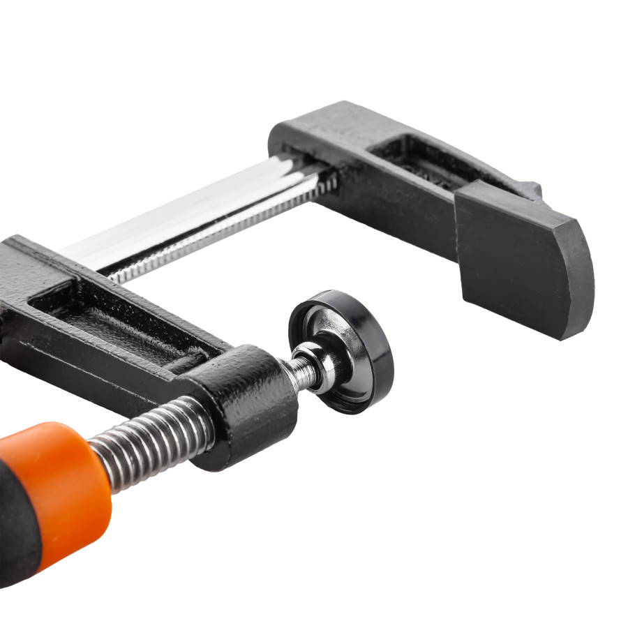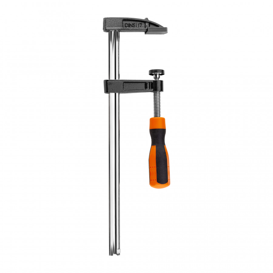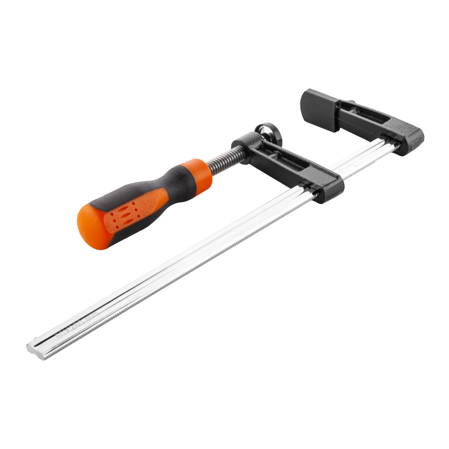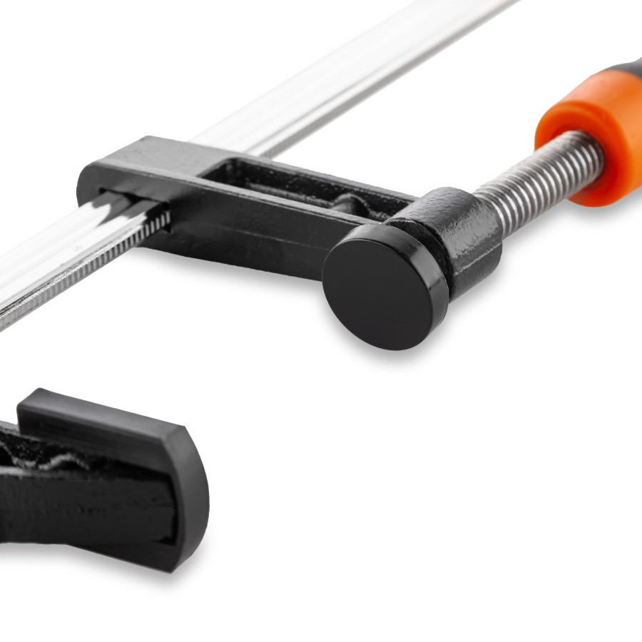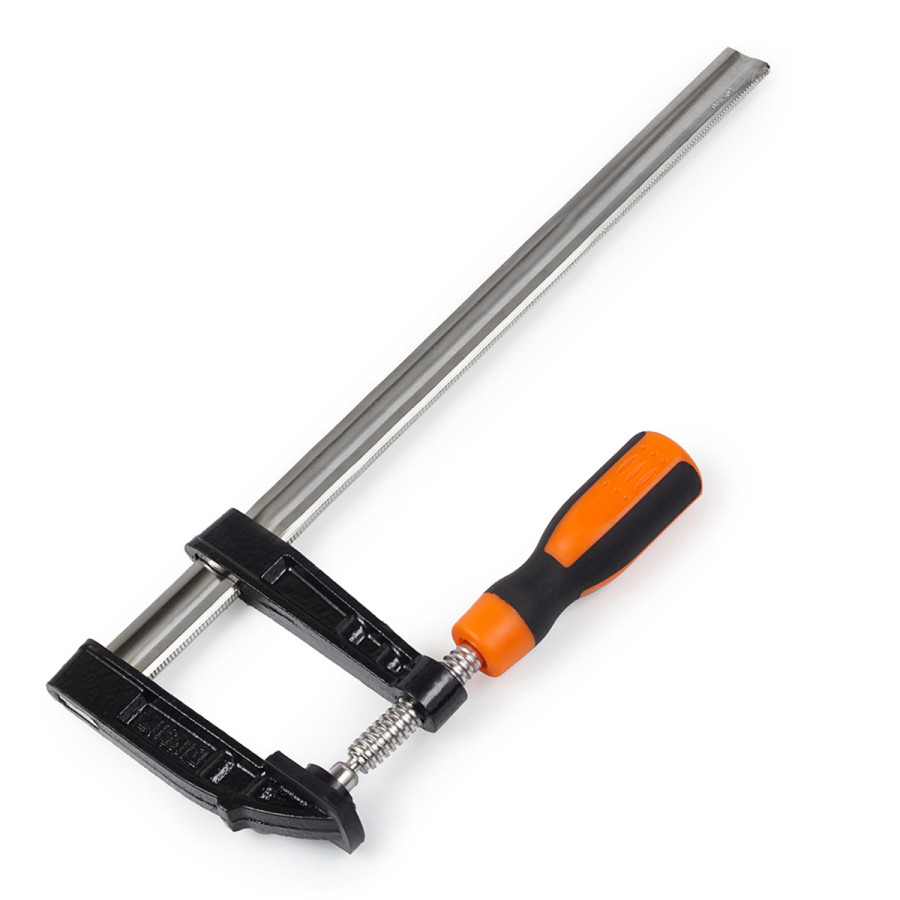 - Надійна фіксація матеріалів – завдяки F-подібній формі струбцина забезпечує стабільне та рівномірне притискання деталей різної товщини.