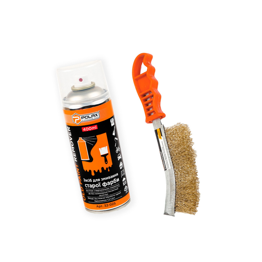 - Назва: Набір для очищення Polax засіб для змивки фарби та щітка дротяна "Ірокез" (332-08)