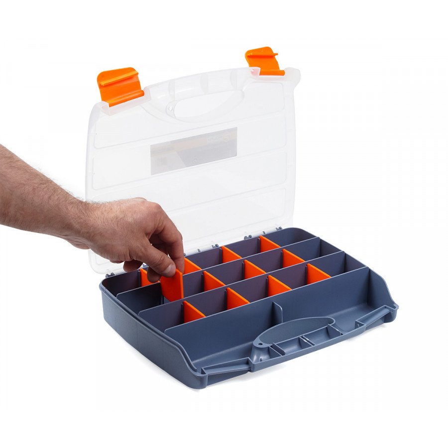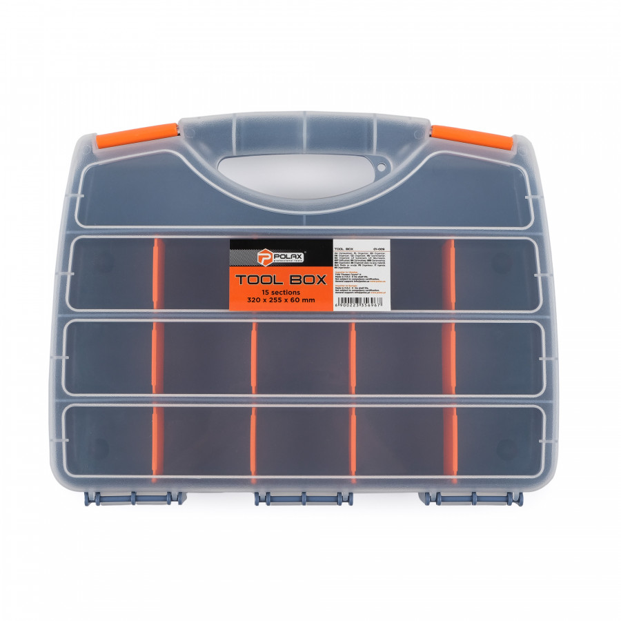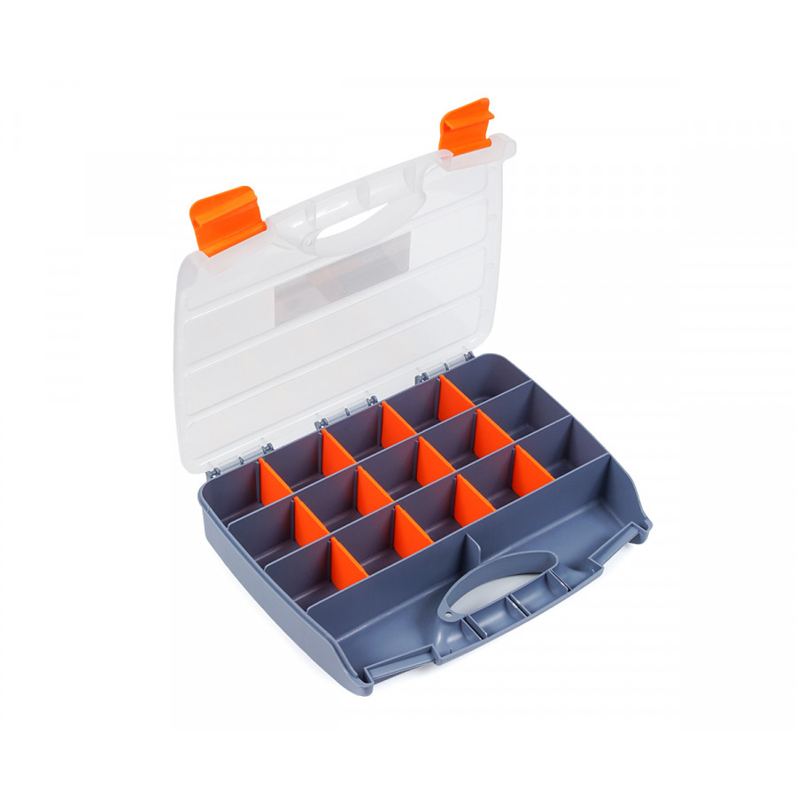 - 15 окремих секцій – дозволяють зручно розподілити різні типи кріпежу, аксесуарів чи інших дрібних деталей.