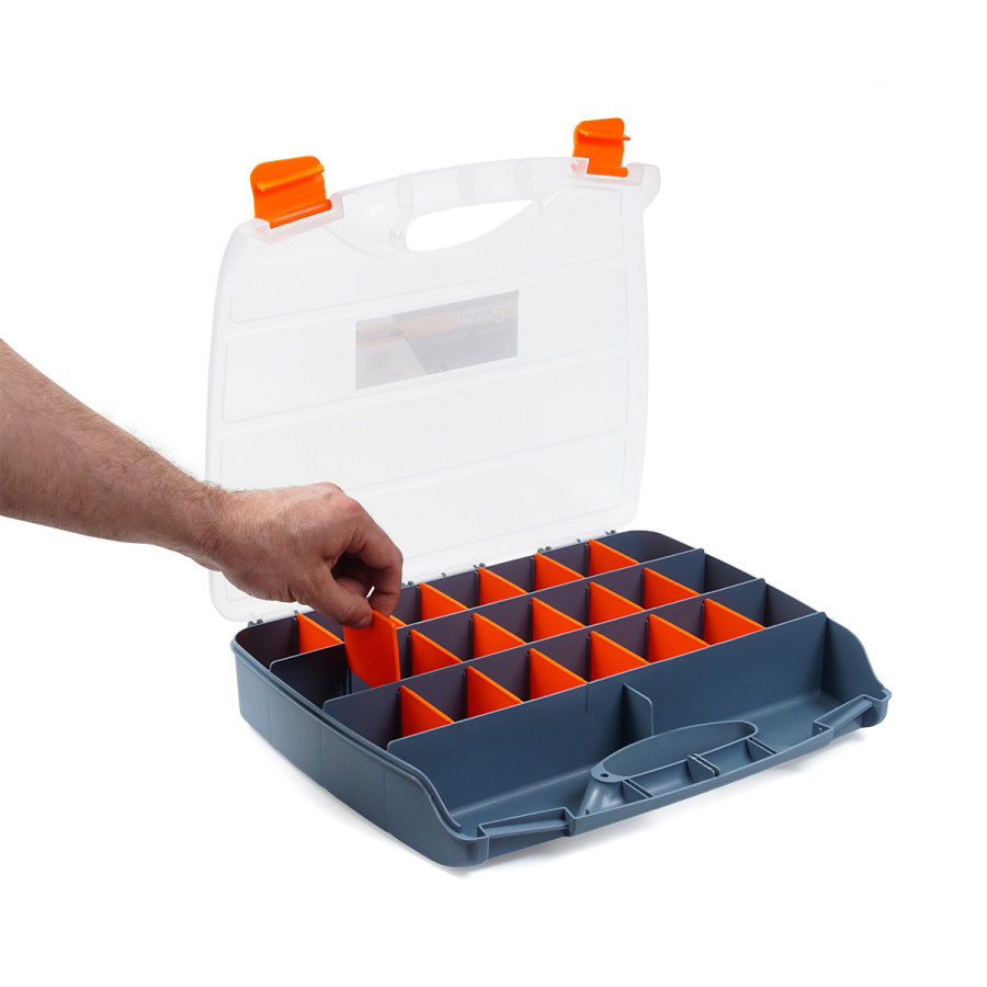 - Зручність організації. 21 окрема секція дозволяє ефективно розподілити різноманітні елементи, запобігаючи їх змішуванню та втратам.