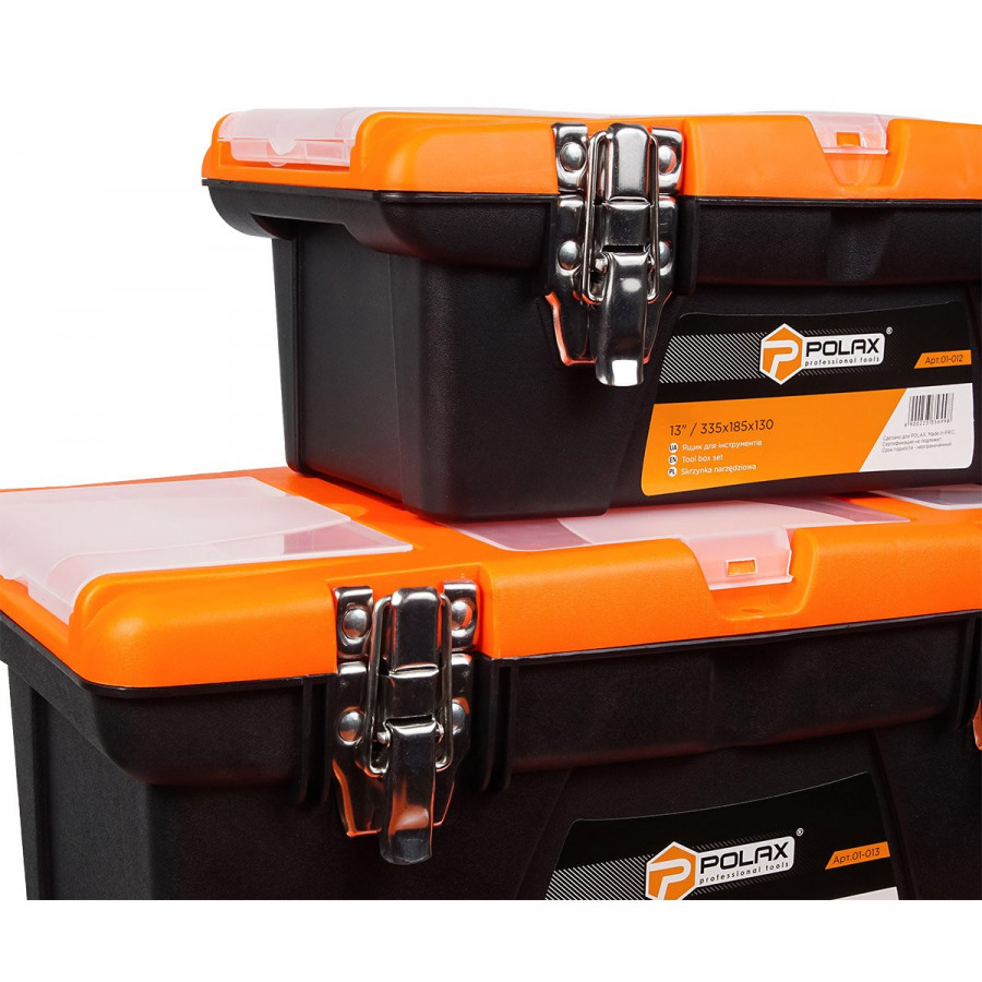 Polax – це бренд, який вже заслужив довіру українських споживачів. Ящики для інструментів цієї марки відзначаються практичністю, ергономічним дизайном та довговічністю. Металевий замок забезпечує додаткову безпеку, а використання якісного пластику гарантує тривалий термін служби навіть при інтенсивній експлуатації.
