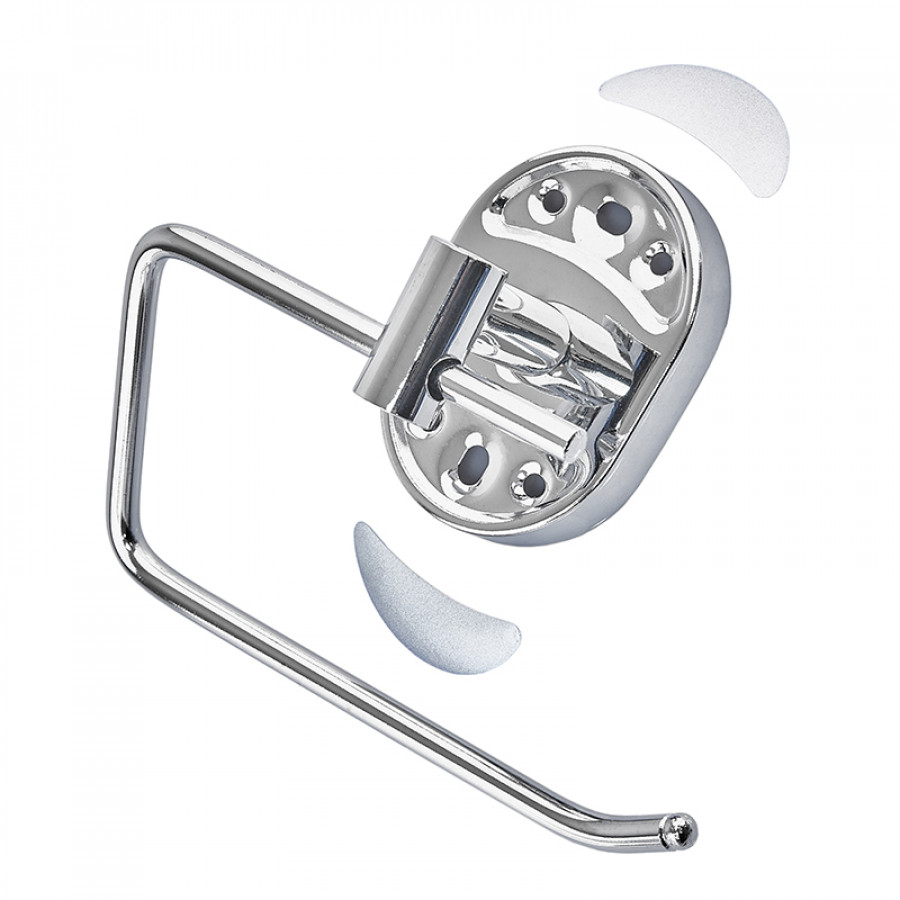Держатель для бумаги изготовлен из прочного металла с хромированным покрытием, что гарантирует долговечность, стойкость к коррозии и легкость в уходе. Он отлично подходит для использования в условиях повышенной влажности, что характерно для ванных комнат.