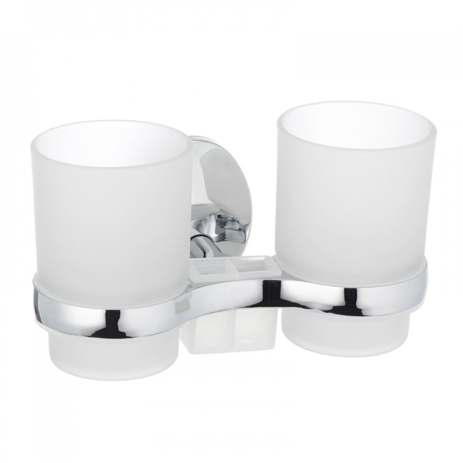 - Функциональность – два стакана позволяют удобно разместить зубные щетки, пасту или косметические аксессуары, что помогает избежать беспорядка на умывальнике.