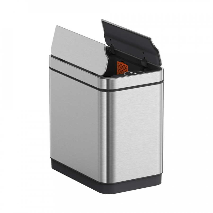 - Бесконтактное открывание крышки – благодаря встроенному сенсору, крышка открывается автоматически при приближении руки, что обеспечивает максимальную гигиеничность и удобство в использовании.
