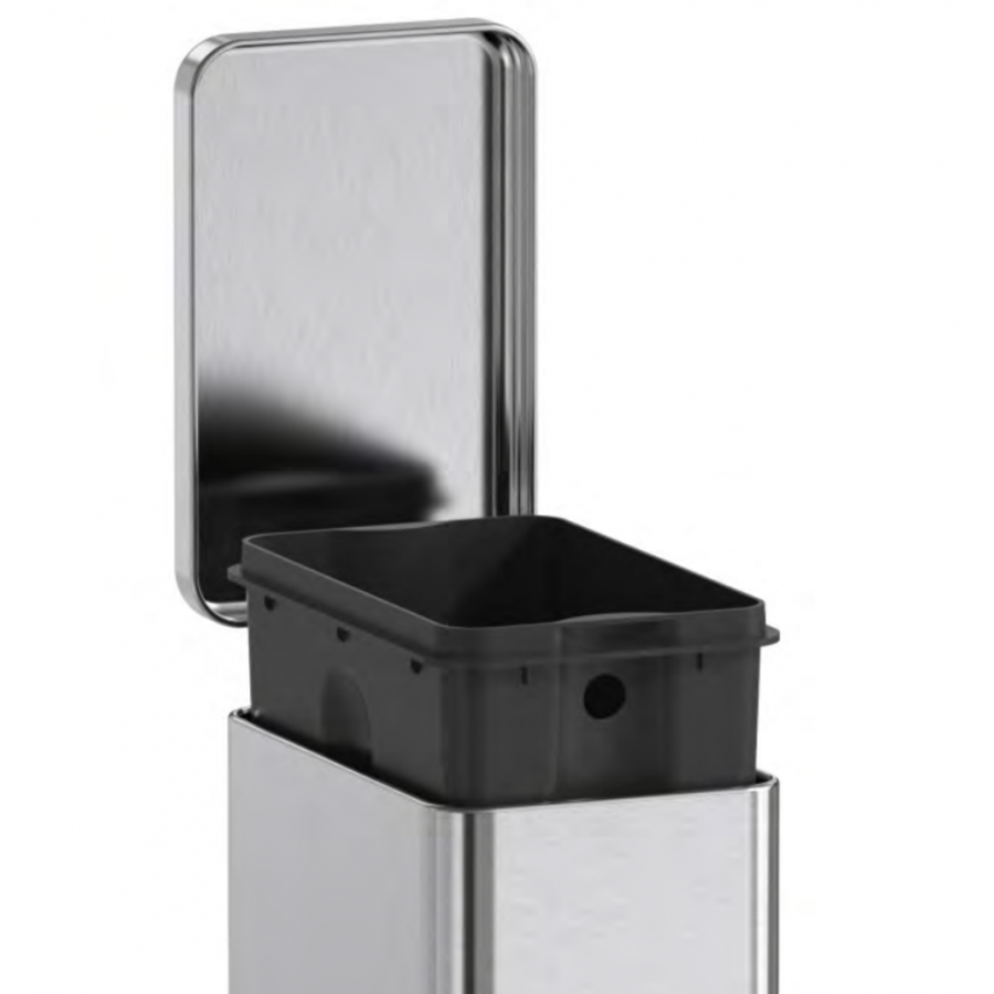 - Удобство в использовании – легкая крышка с механизмом плавного закрытия делает процесс выбрасывания мусора максимально комфортным.